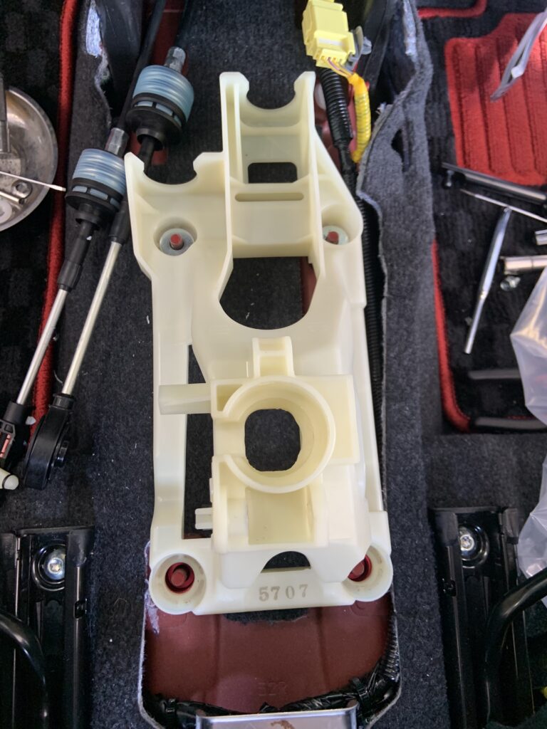 シフト周りの内装、シフトレバーをバラしていきます。小さなピン、ボルトなどを無くさないようやっていきます😓