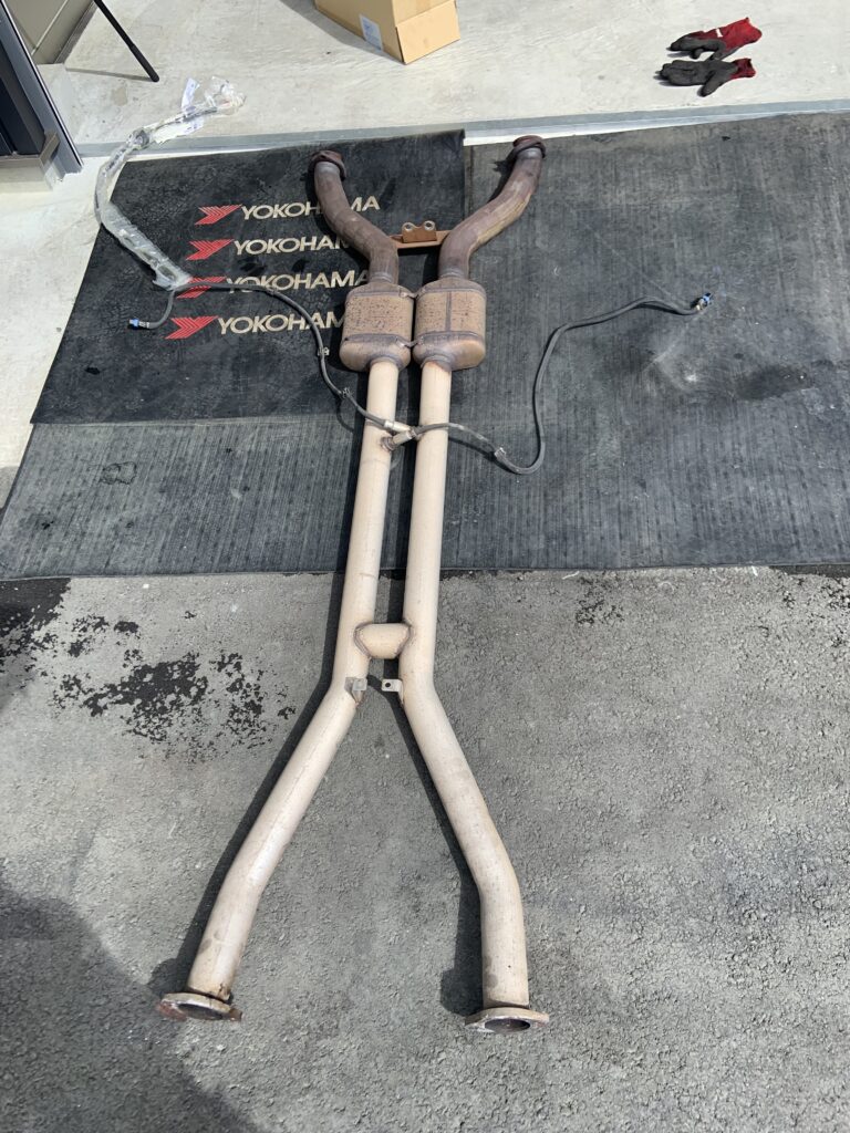 車をリフトアップ、マフラーを取り外します